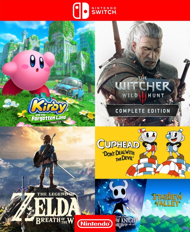 Kirby And The Forgotten Land mas The Witcher 3 Wild Hunt Complete Edition mas The Legend Of Zelda Breath Of The Wild mas Cuphead mas Hollow Knight mas Stardew Valley - Nintendo Switch